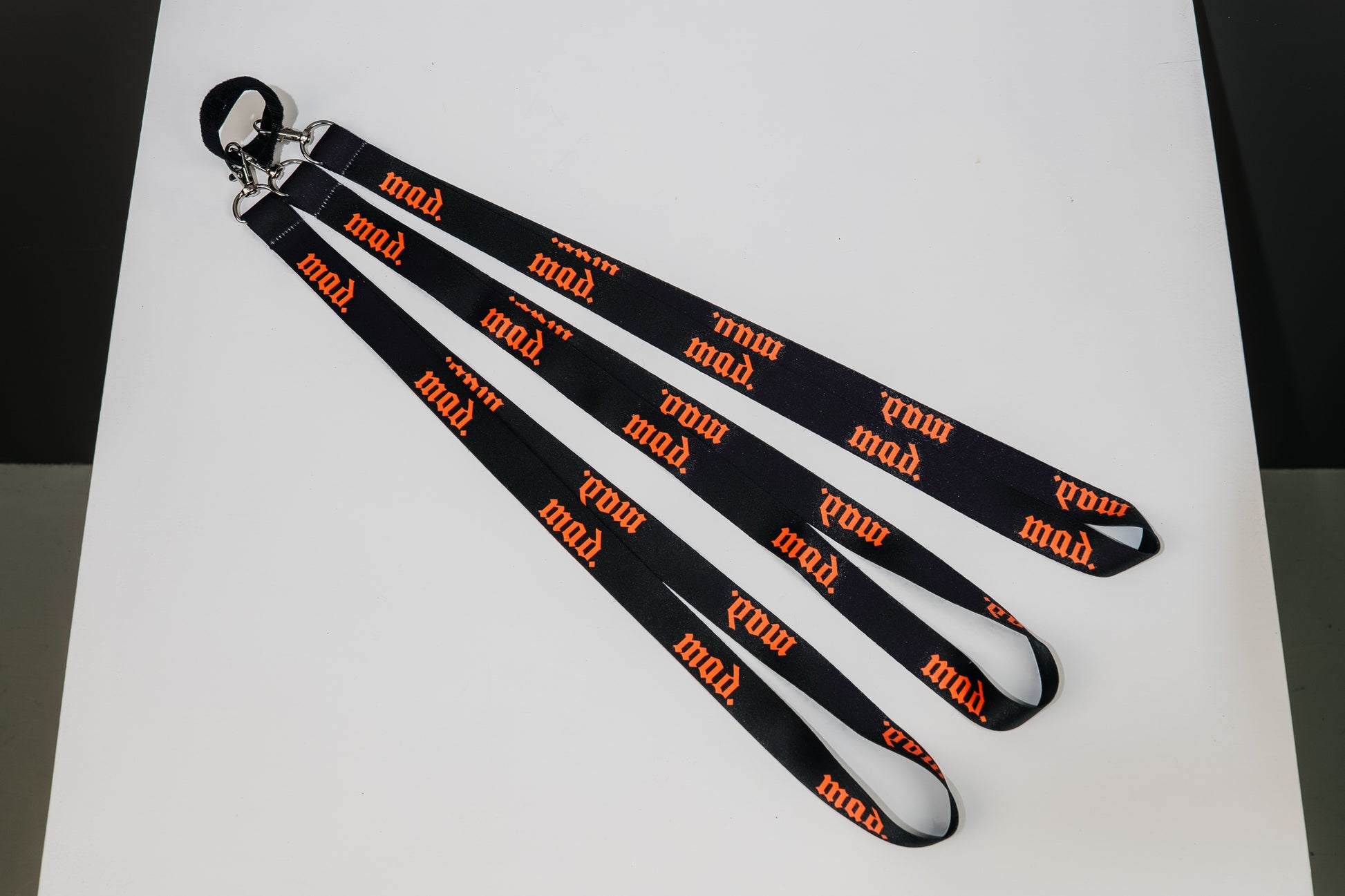 Das mad. Lanyard im klassischen Black–Orange Design.